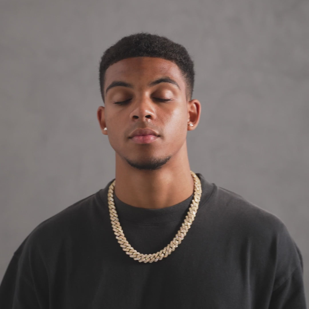 Elevate your style instantly with our Iced-Out Prong Link Chain! Meticulously crafted, this jaw-dropping piece is adorned with hand-set stones that guarantee you'll be the centre of attention wherever you go. Prepare to radiate confidence and make heads turn with this dazzling masterpiece.