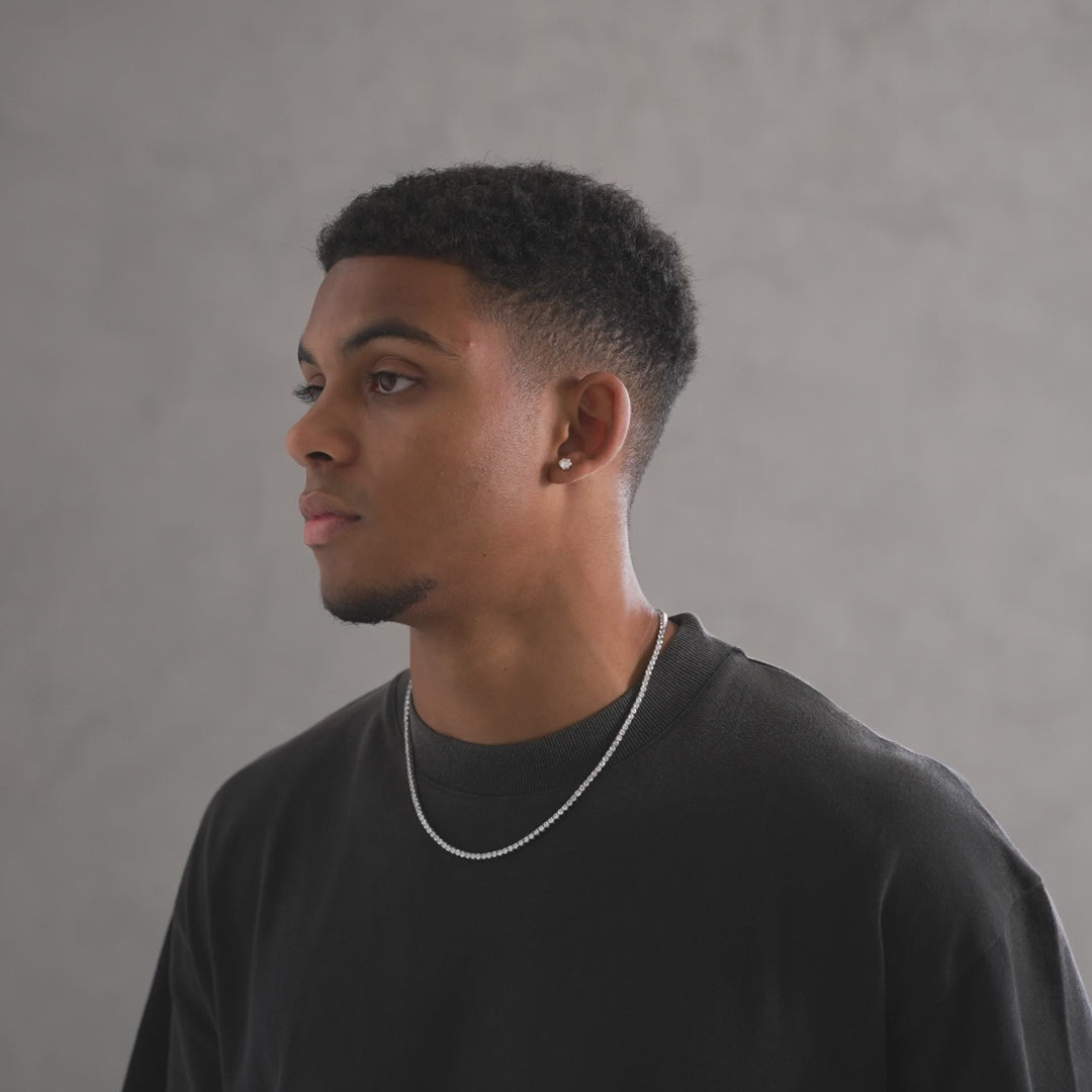 Introducing our must-have 3mm Tennis Chain, a timeless staple that belongs in every jewellery collection. This versatile piece allows you to keep it subtle while still radiating with undeniable brilliance. Its refined design ensures a sleek and sophisticated look that never goes out of fashion. Prepare to turn heads and capture attention wherever you go with this guaranteed head-turner.